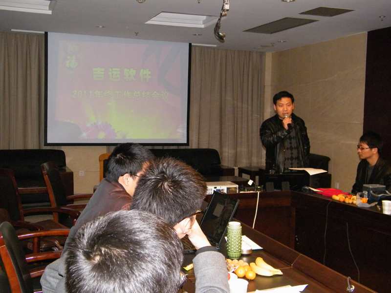 元月十三日,吉运软件全体员工参加公司举行的2011年终工作总结会议。会上,公司各部门领导对2011年工作做了详细的总结汇报。对一年来在岗位上勤恳付出、工作表现优异、尽职尽责的员工们颁发证书。公司领导对于大家2011年取得的成绩做出肯定,并对2012年的发展做出了规划及要求。