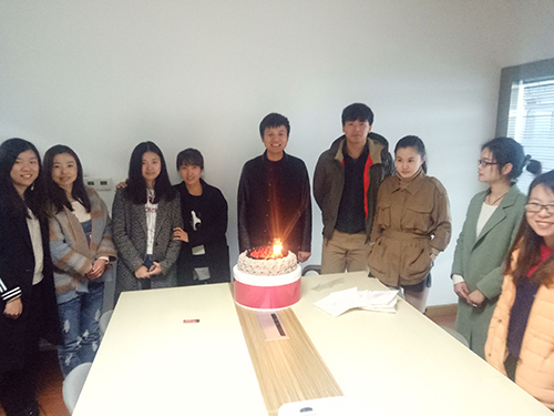 3月的一天,在不同的地方,所有员工齐聚一堂为寿星们庆祝生日,现场气氛热情洋溢、轻松愉快。生日会现场大家一起点蜡烛、唱生日歌,寿星们在大家的歌声中许下自己的生日愿望。最后,大家一起切蛋糕,吃蛋糕,现场气氛被推向高潮,欢声笑语回荡在生日会现场。