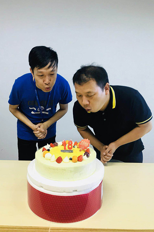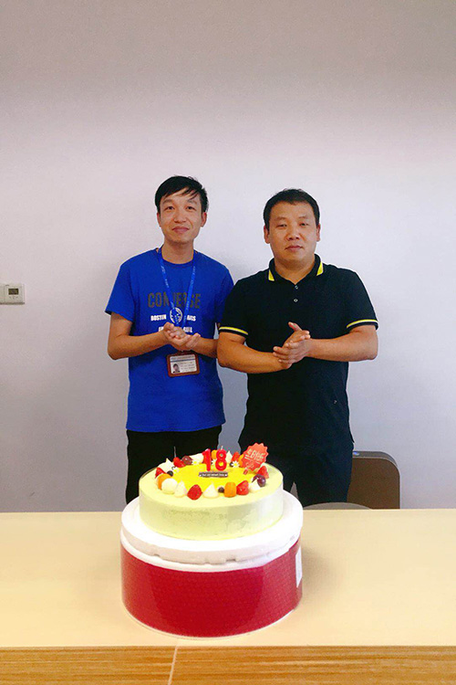 下午两点,生日会准时在会议室开始,插上18岁的蜡烛,祝愿两位寿星青春永驻,伴随着熟悉的音乐款款而来,大家齐唱生日歌,两位寿星闭上双眼,许下生日愿望。迟总切开生日蛋糕现场气氛再次被推向高潮。大家在其乐融融、甜甜蜜蜜的气氛中结束了本月的生日会,继续投入到自己的工作中去。